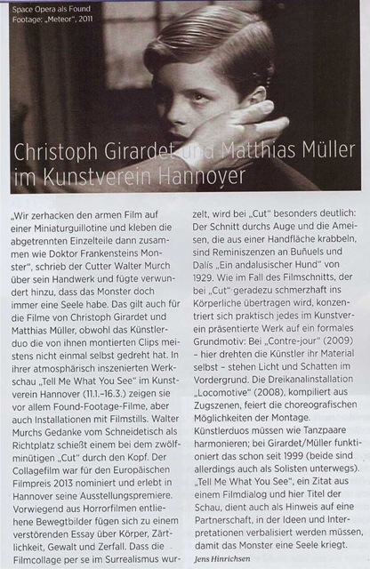 Elena Duque: Matthias Müller y Christoph Girardet, (Des) montaje cinematográfico. In: Artecontexto, no. 26, 2010.